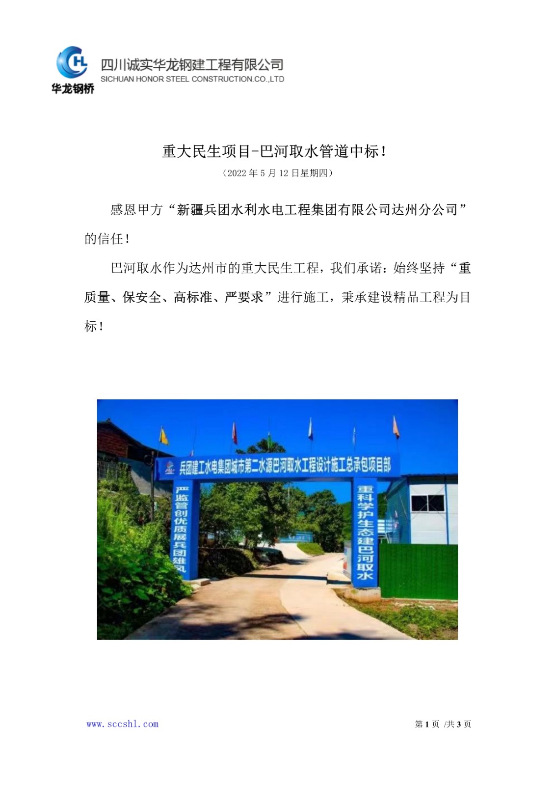 重大民生项目—巴河取水工程中标!