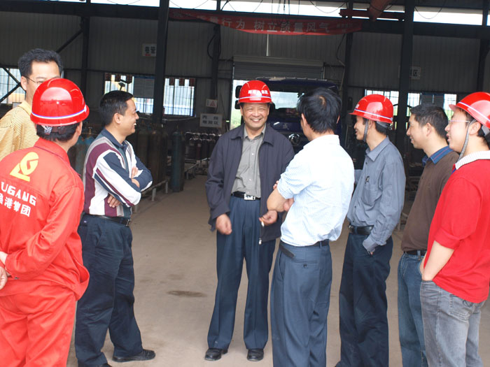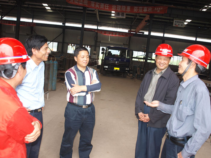 图表 1厂长杜长生、总工程师丁江陪同广西交通厅杨总在工厂考察